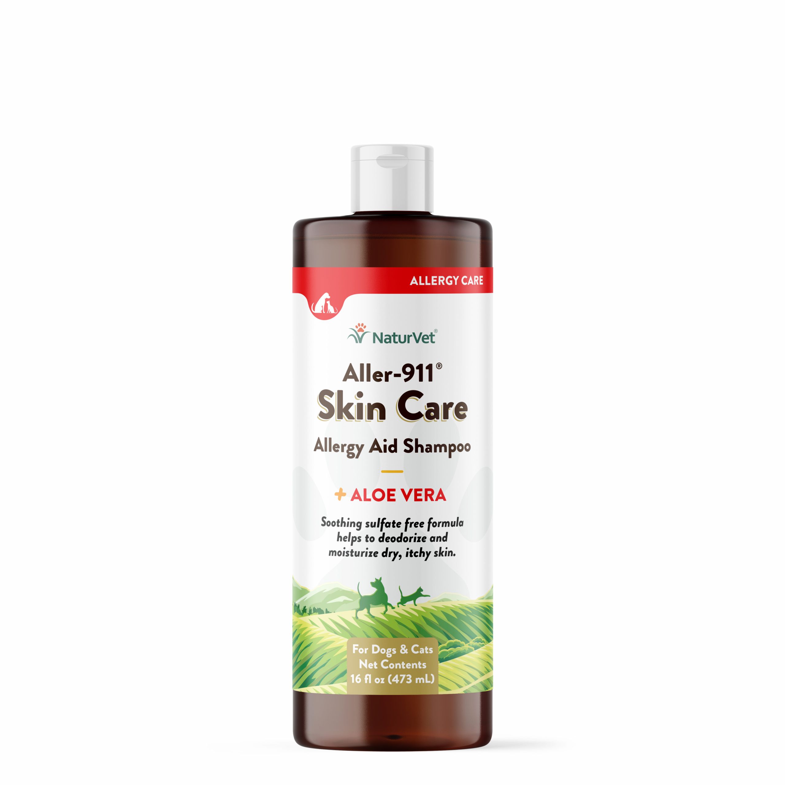 NaturVet Aller-911 Skin Care Shampoo is sulfate free and formulated to be soothing for pets with seasonal allergies. Cleans the dirtiest pets while remaining mild enough for daily use without stripping the coat of essential natural oils. Also a very effective deodorant shampoo. Routine bathing leaves the skin & coat soft, shiny and looking great.