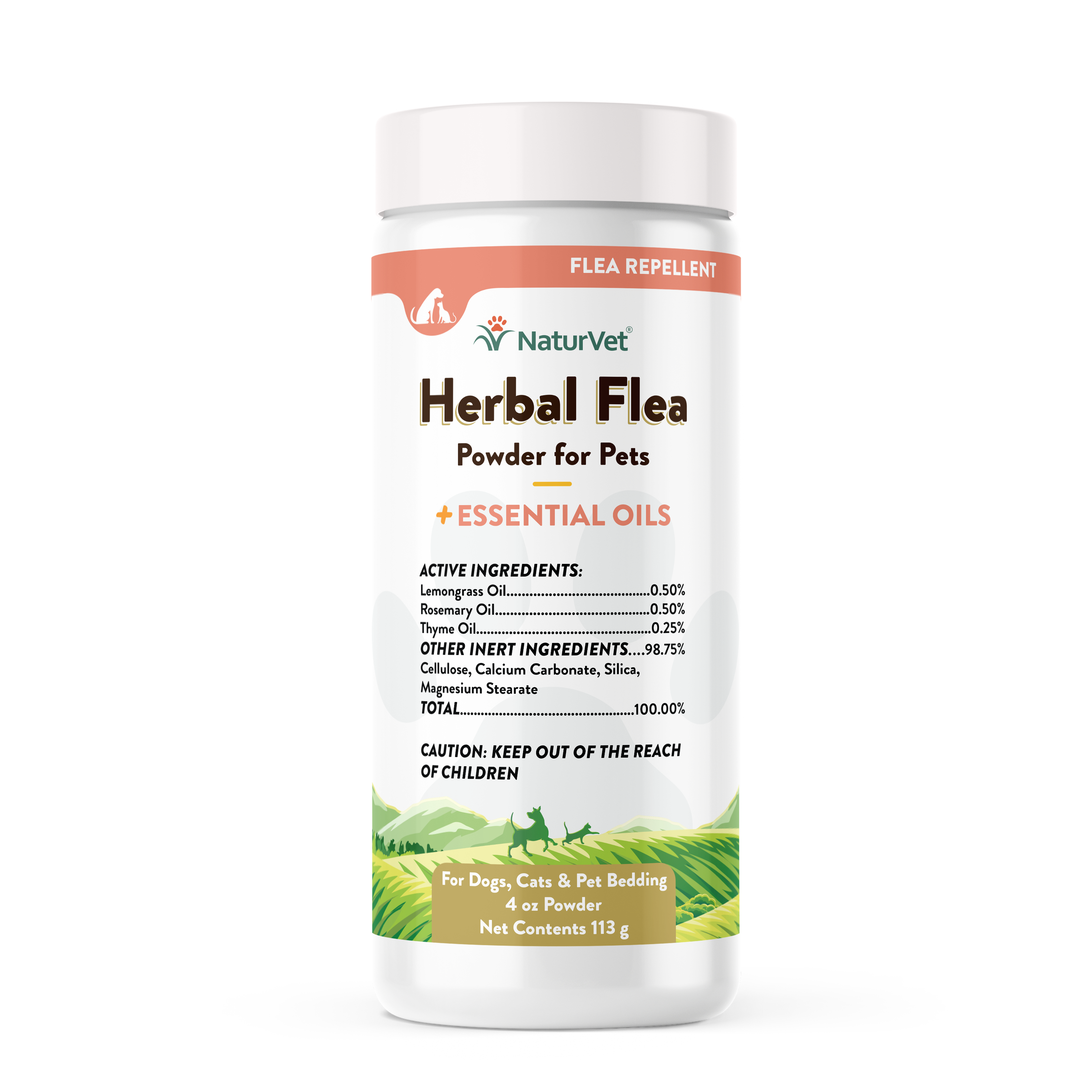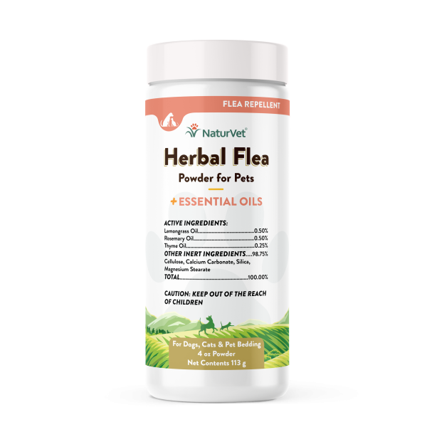 NaturVet Herbal Flea Powder can be used directly on dogs and cats over the age of six weeks.The unique combination of natural Thyme, Lemongrass, and Rosemary Oil repels fleas while deodorizing and absorbing excessive skin oils. NaturVet Herbal Flea Powder will leave your pet with a fresh and pleasant fragrance.