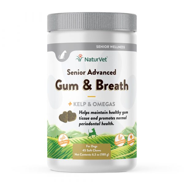 Specially formulated for senior dogs but may be used in dogs over 1 year of age, or when the most support is needed. Kelp, Sage, and Omegas-3, 6, and 9 help support healthy teeth and gums, while the Peppermint and Parsley help to freshen breath.